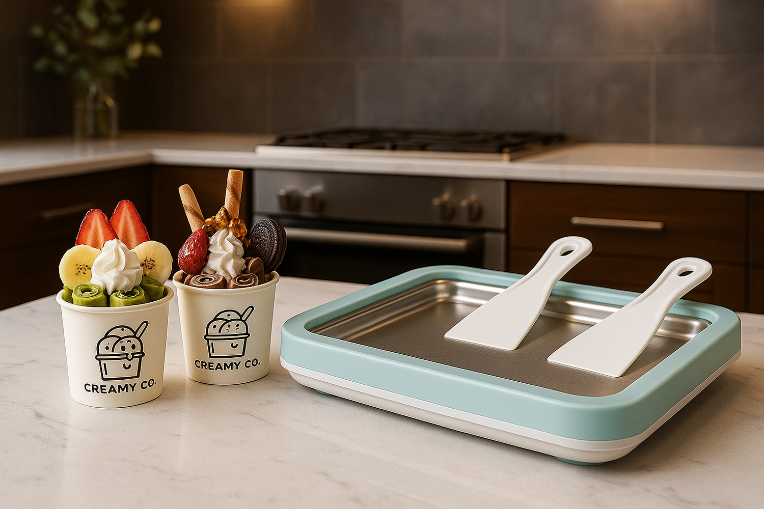 Skip the café desserts and make something better! With Creamy Co., you can create fresh, homemade ice cream in minutes! Top it with fruit, cookies, candy, and more-right in your kitchen!