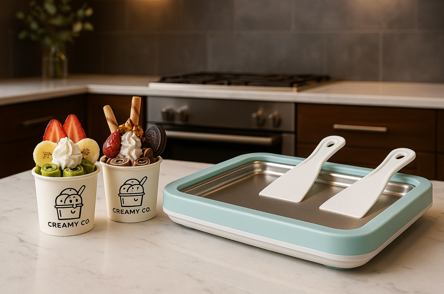 Skip the cafe desserts and make something better! With Creamy Co. you can create fresh, homemade ice cream in minutes! Top it with fruit, cookies, candy, and more right in your kitchen!