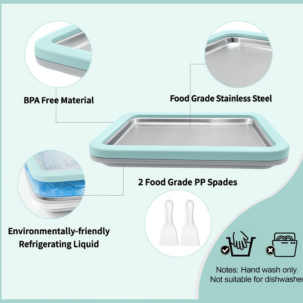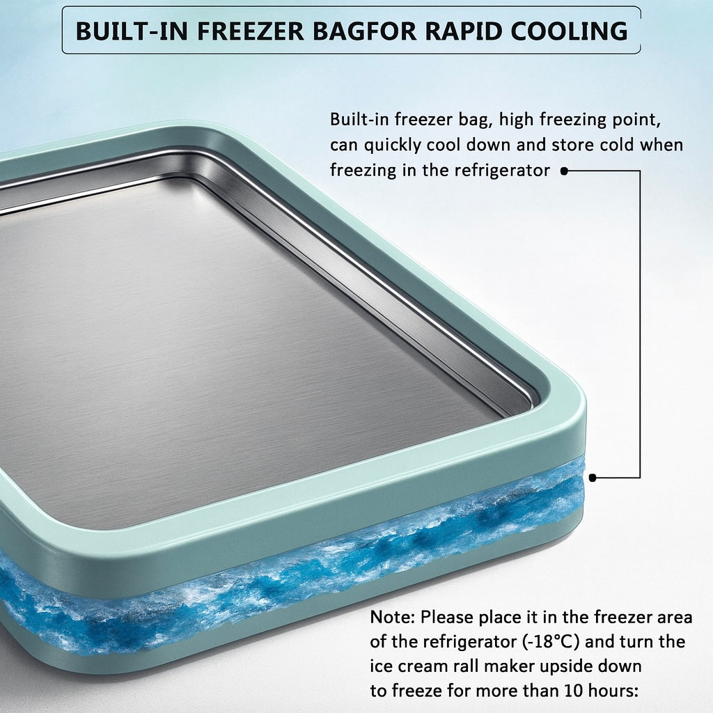 For the best results, we recommend freezing the tray for 12–24 hours before use! Once fully chilled, you’ll be able to make smooth, creamy rolls in minutes. Always place it upside down and flat in the coldest part of your freezer for even cooling!