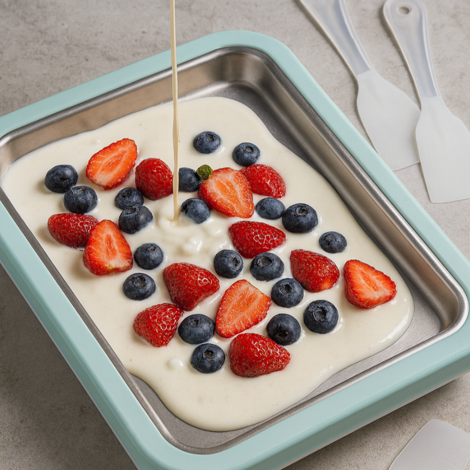The Creamy Co. Roller™ is a game-changer in the world of homemade desserts. With its premium stainless steel design and simple DIY setup, you can effortlessly create your favorite flavors — from fruity blends to chocolatey swirls. Say goodbye to overpriced ice cream shops and hello to endless flavor combos made in your own kitchen. Just pour, spread, roll, and enjoy — it’s that easy!